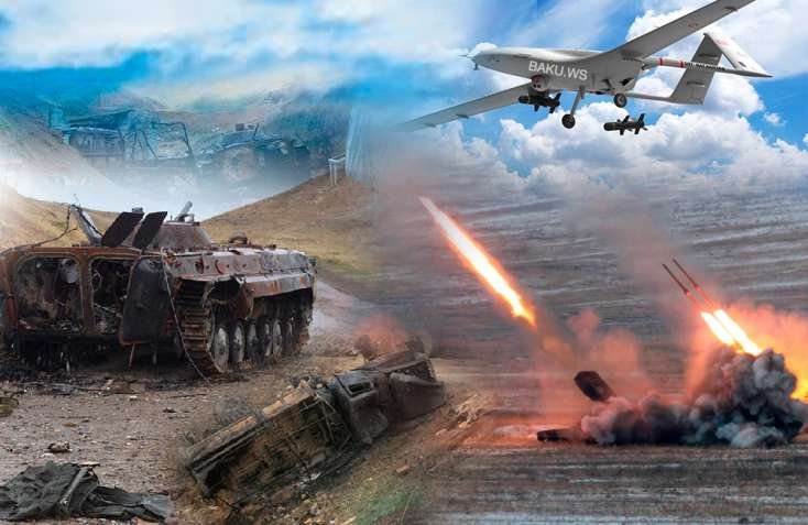 "Məhv edilmiş Ermənistan texnikası: tank 234 ədəd məhv edilib; 36 tank hərbi qənimət kimi götürülüb; piyadaların döyüş maşını – 49-u məhv edilib, 24-ü hərbi qənimət kimi götürülüb; özüyeriyən artilleriya qurğusu – 16 ədəd məhv edilib, müxtəlif çaplı toplar – 190; "Uraqan” sistemi – 2, TOS odsaçan – 1, əməliyyat-taktiki raket kompleksi "Elbrus” – 2, Toçka-U – 1; OSA zenit-raket kompleksi – 35; TOR zenit-raket kompleksi – 3, KUB və KRUQ zenit-raket kompleksi – 3; radio-elektrik mübarizə sistemləri – 9; S-300 zenit-raket kompleksi – 2, yük avtomobilləri 196-sı məhv edilib, 98-i qənimət kimi götürülüb”.