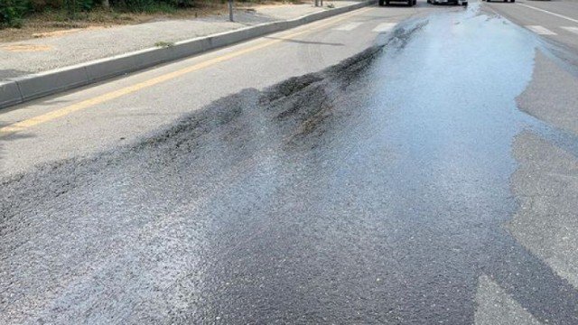 Bakıda yola yanacaq dağılıb